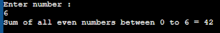 printf(“Sum of all even numbers between 0 to %d = %d”, n, sumOfEvens);