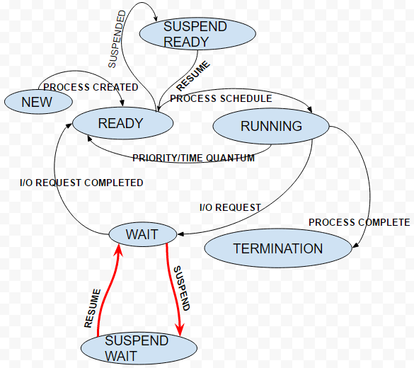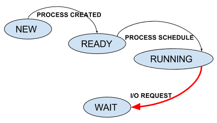When a process request for input/output than that process will left the running state, and will join new state known as wait state.