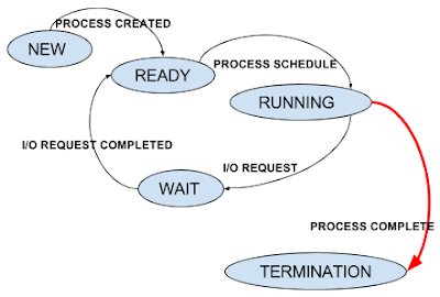 Termination State:When process comes in running state, there is no more input output request by the process, because it’s already get completed.