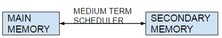 Medium term scheduler is responsible for switching  the process from ready state and wait state to the suspended ready state and suspended wait state.
